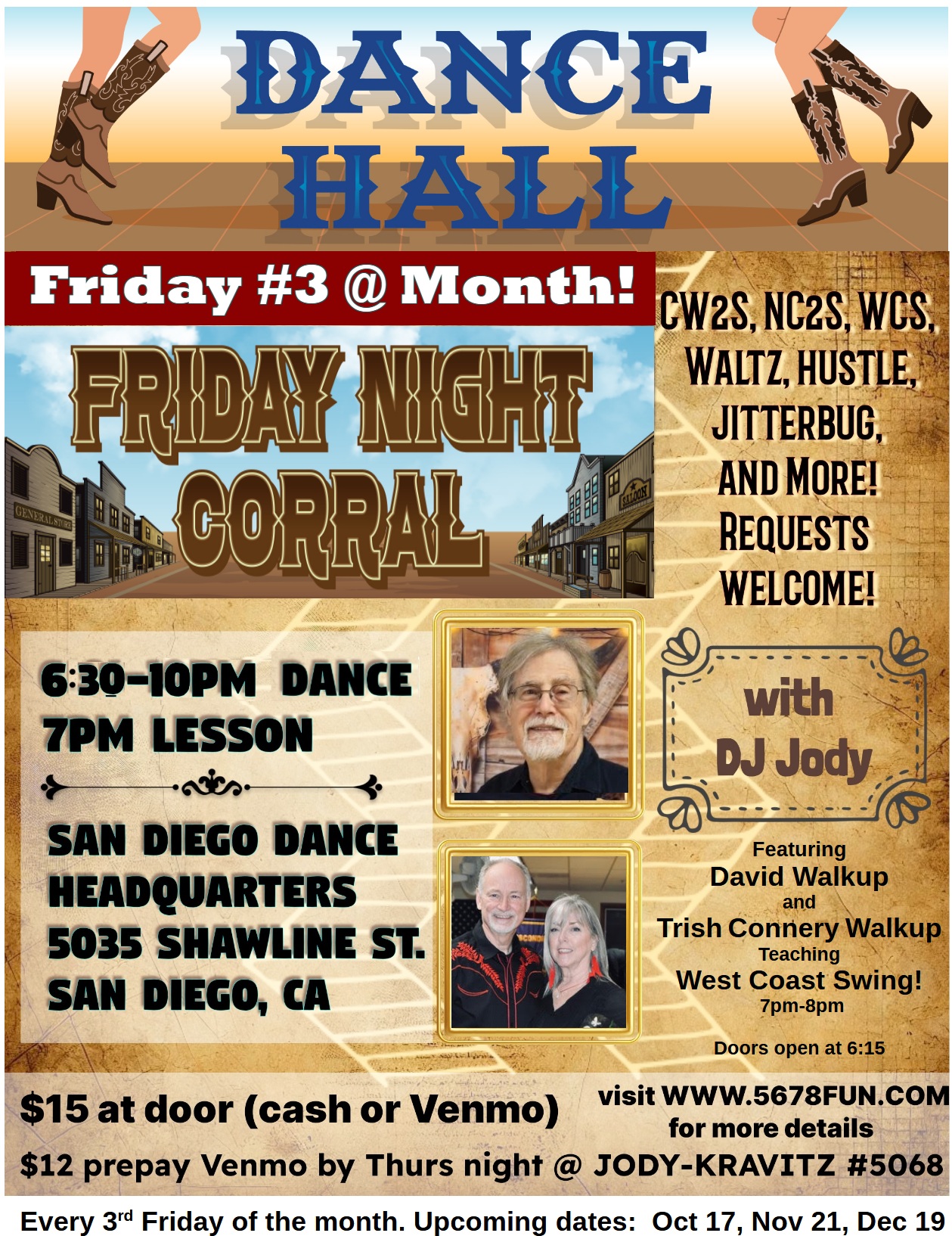 Friday, October 17 - FRIDAY NIGHT CORRAL @ Dance Headquarters with DJ Jody;