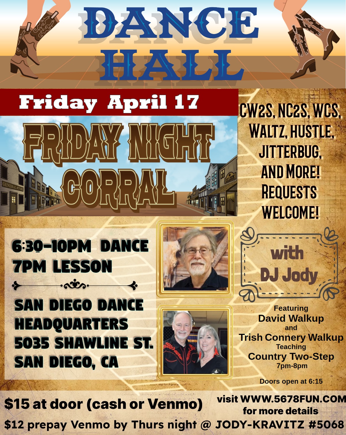 Friday, April 17 - FRIDAY NIGHT CORRAL @ Dance Headquarters with DJ Jody;